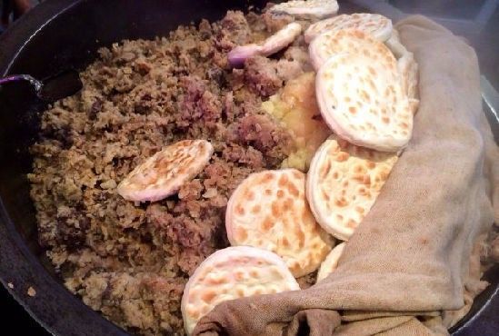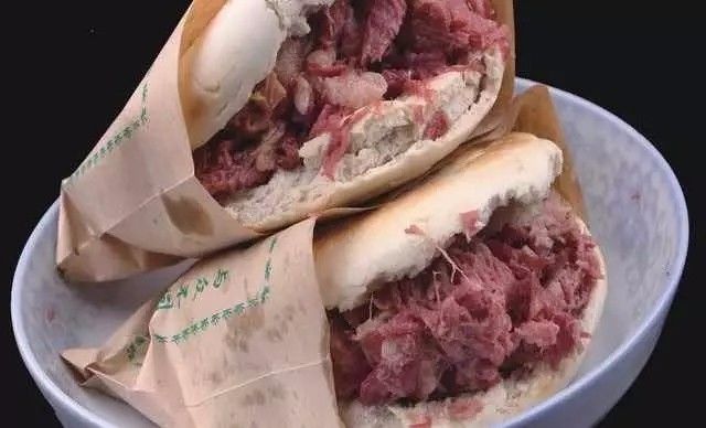 腊汁肉夹馍是陕西一绝。肉要选用上等的猪肋条,以秘制老汤炖至肉色金黄,肉质酥烂,剁成米粒大小肉块,夹到刚烙好的馍里,趁热咬一口,馍酥脆入口即化,肉糜烂汤汁香浓。