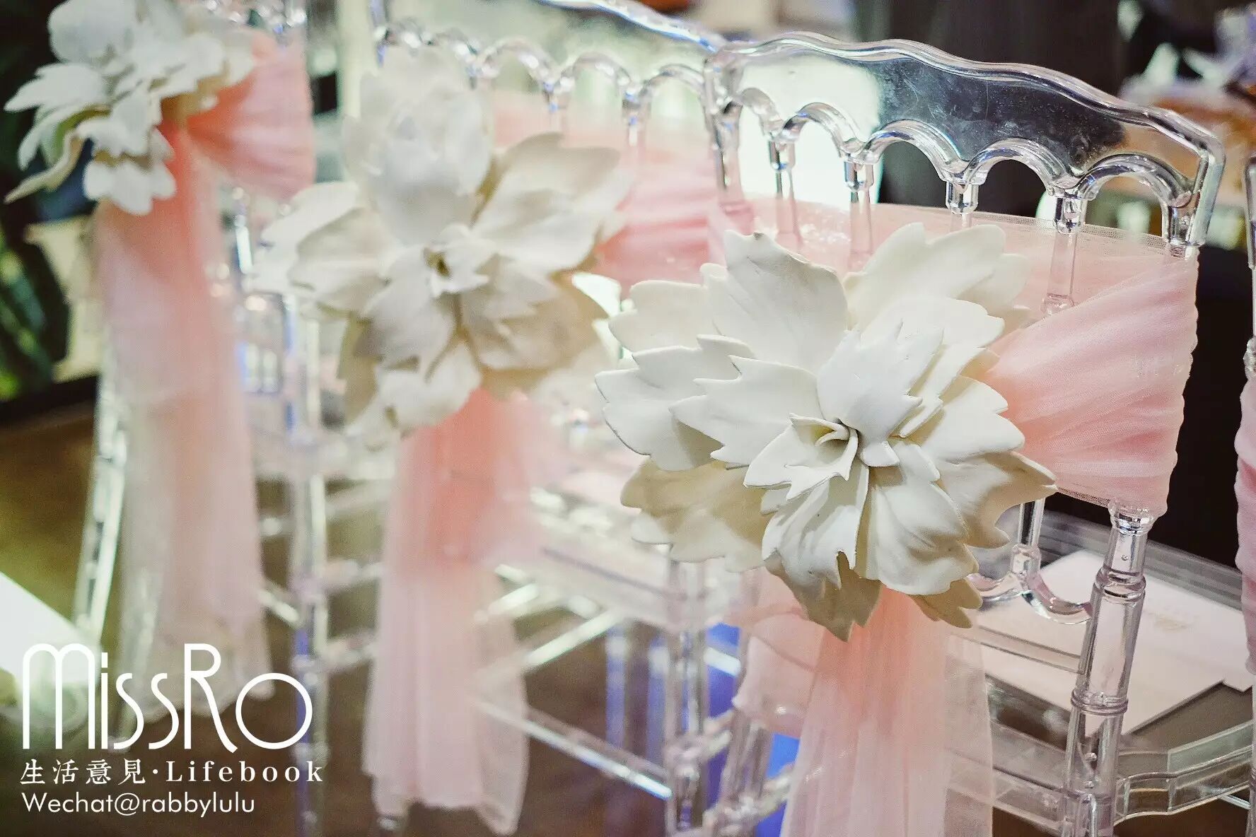 公主风的椅子绑上少女心的粉红丝带和纯白花饰