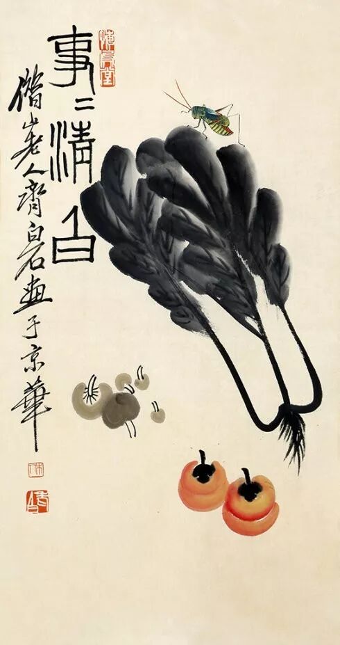 众所周知,齐白石先生画的虾形神兼备,生动有趣,堪称画坛一绝。另外,他还擅画花鸟、虫鱼、山水、人物。齐白石先生笔下的白菜生动简练,诙谐有趣,透露着旺盛的生命活力和浓郁的生活气息。