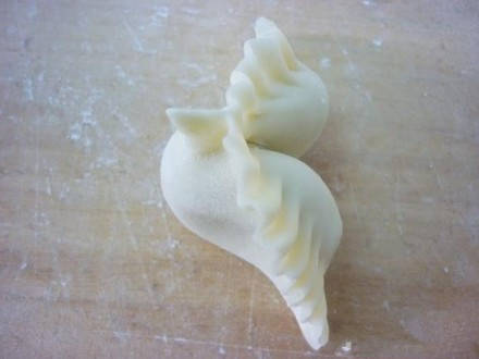 把圆皮均分5点,粘在一起形成5条边,把口捏紧