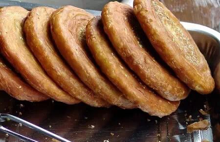 土桥葱子糕,制作历史优久,采用纯土鸡蛋、面粉、猪板油按1:1:1的比例手工制作而成,外观金黄,味道甜而香脆,化渣而不腻。这种糕点制作起来非常考究,火候、刀工都要恰到好处。