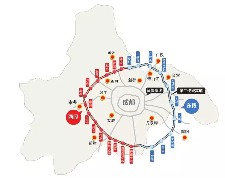 “二绕”全长223公里,分东、西两段建设,西段已于去年12月通车。“二绕”途经成都经济圈内3市12县——新津县、崇州市、温江区、郫县、新都区、彭州市、广汉市、青白江区、金堂县、龙泉驿区、简阳市和双流县,全线按双向6车道高速公路技术标准,全线设计时速100公里,最快两个半小时左右,就能驾车在这3市12县逛一圈。