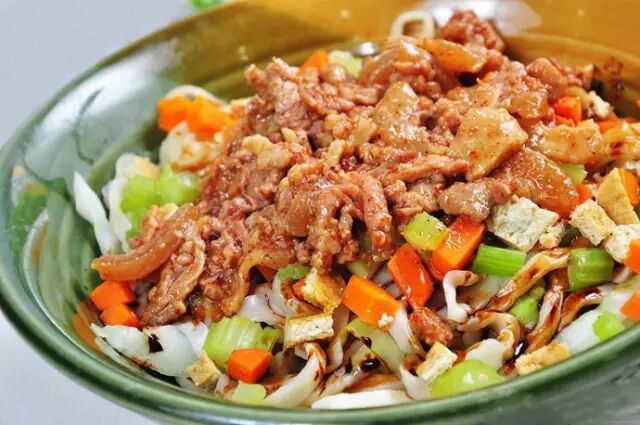 萝卜、卤干、芹菜、白菜搅拌均匀,味道鲜美,老少皆宜,吃起来根本停不下来,配着面汤,加个卤干~就这个feel倍儿爽!