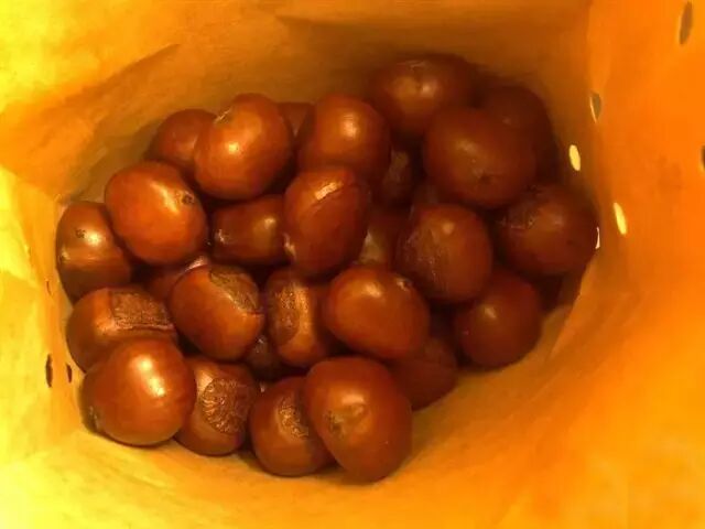 店员麻利地把瘪壳、烂壳的给挑出来,所以吃货们拿到手里的板栗个个饱满。