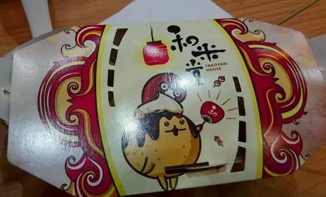 这个包装盒的设计就是一个章鱼小丸子的卡通人物,拿着一个带有“和”字的小扇子,略显调皮!