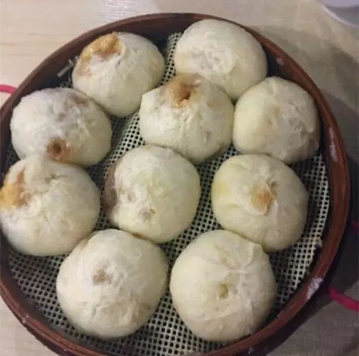 包子是圆圆的小包子,一笼有十个,饭量大的人单吃一笼包子可能会吃不饱,再喝一碗粥就差不多了。