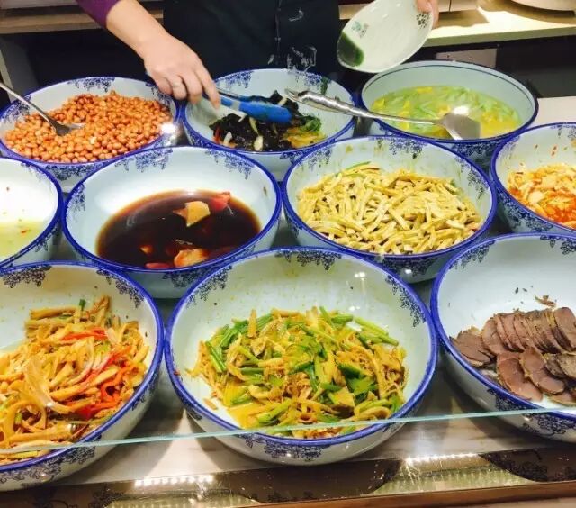 很多种凉菜素菜可以拼盘吃,吃着羊肉泡馍,就着凉菜,感觉那是棒棒哒!