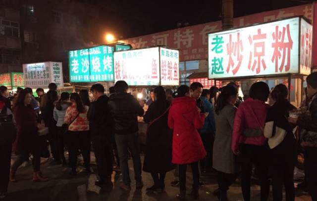 老郑大南门对面的淮北街,你以为那家烟酒店的灯火已经是繁华尽头,却不成想再往前三米,就遭遇了一大群挤挤挨挨排长队的人。