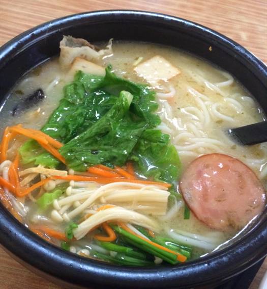 带有汤汁的食物这个是首选,各种菜营养丰富,搭配的也很漂亮,还有爽口的萝卜块喔!