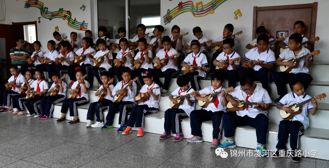 本学期三年级不仅成立了新的手风琴队,学校在资金紧缺的条件下,还投入1万多元成立了尤克里里社团。校尤克里里团队在表演《闪烁的小星》。