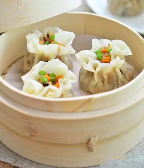 做法是:选个大、水凌的萝卜,洗净切片,在锅内煮烂白布包好将水挤干剁碎;选较肥的羊肋肉,剁碎成沫;加大葱、上等酱油、五料面、好清香油。选上等细面粉温水搅拌反复轧揉,作剂旋成饺子皮状,边薄有折纹。一两面制成五个,每个重二三钱,包时将酿成的馅装在面皮内,撮成上如石榴花形,下如灯笼形的“烧麦”,上笼蒸20分钟即成。