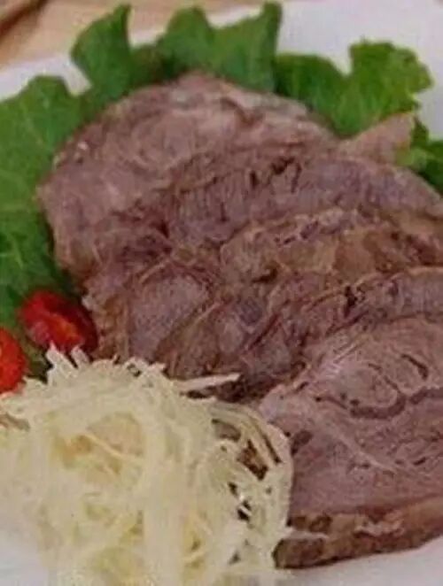 菊花肉是淅川县的一道特殊凉菜,用猪头肉与猪耳朵通过数道工序做成。