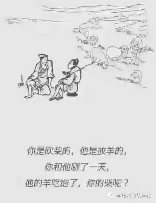 你是砍柴的,他是放羊的,你和他聊了一天,他的羊吃饱了,你的柴呢。这是昨天同样火的一张图,旨在呼吁放弃无效社交。