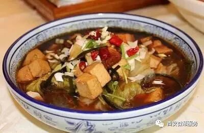 豆腐烩菜泡馍里面的配料十分丰富,豆腐、海带、粉条、青菜、木耳,还有切成块的白吉馍。汤是肉汤,量足味道好,深受人们的喜爱和好评。豆腐烩菜做法简单,味道棒,深受大家的喜爱。目前西安街头到处都能看见这种小吃。北方的冬天,寒风刺骨,出口气都能结成冰,这个时候最适合吃一碗豆腐烩菜泡馍,热气腾腾!让你全身都暖和起来。今天御品坊美食特产馆小编就教大家做陕西名吃--豆腐烩菜泡馍: