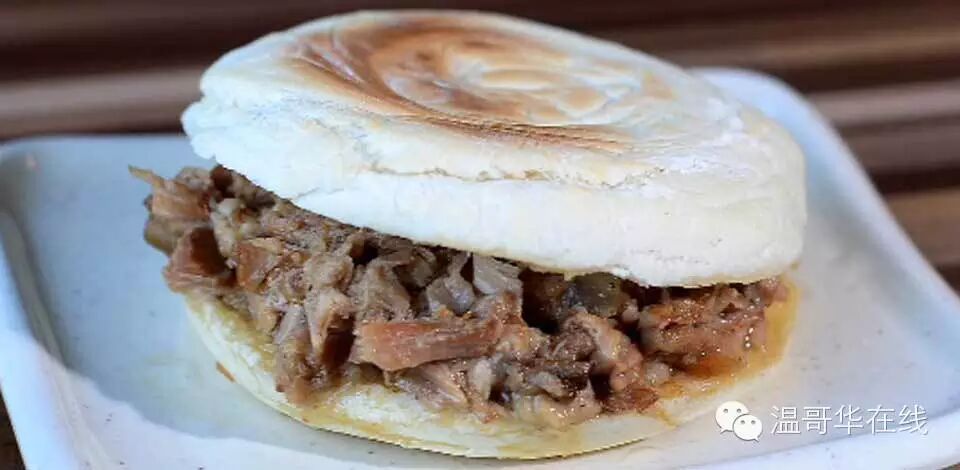 起源于战国时代的肉夹馍是古城西安的著名小吃,享有中式汉堡美誉。它是两种食物的绝妙组合:腊汁肉,白吉馍。肉夹馍使得腊汁肉、白吉馍合为一体,互为烘托,将各自滋味发挥到极致。腊汁肉历史悠久,扬名中外。食者有“肥肉吃了不腻口,瘦肉无渣满口油,不用牙咬肉自烂,食后余香久不散”之赞誉。厨娘子家的腊汁肉夹馍、辣味牛肉夹馍、孜然炒羊肉夹馍、~~~馍馍表皮脆脆的,肉也很香,擀面皮筋道。咬下一口,满嘴流香。又带着一点儿嚼劲,非常好吃,让人回味。