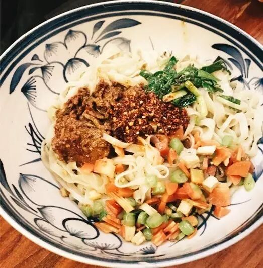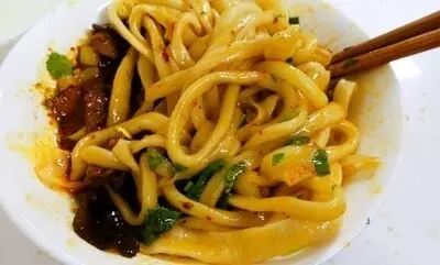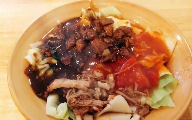 biangbiang面要大口吃才过瘾,他家的面劲道,番茄鸡蛋、肉粒、肉丝三种不同味道的浇头融合到一起,浓郁的酱汁包裹在劲道的宽面上,真的特别美味!