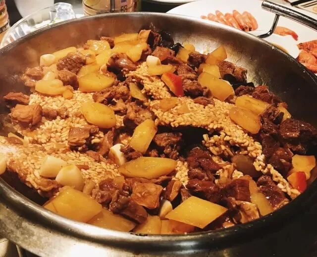 锅巴黄牛肉,锅巴特别好吃,脆脆的很香,土豆很软绵,牛肉也很嫩,火候掌握的很到位。锅巴一定要趁热吃,泡软了口味就不是那么好了。
