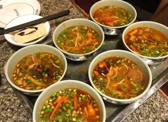 莲花餐饮,西安餐饮界的老招牌了,多年在高新屹立不动。菜品和性价比都是杠杠滴,看着其貌不扬,确是口碑口味双飞的代表。这里拼的不是环境,是熟客。,鲜美的高汤里有藕、萝卜、蛋饺,还有炖的肉块。炖得软糯的藕和萝卜,在冬日里来上一碗,真的很舒服。虽然一盆都是肉,但是一点也不油腻,反而会有一种清淡的感觉。