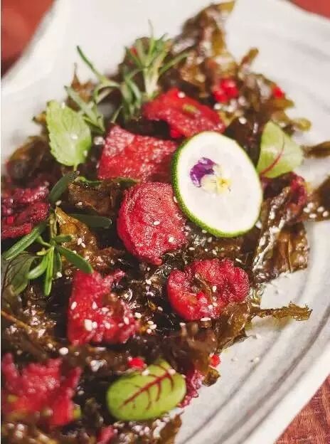 薄荷牛肉,有些重口味,一定要把里面的薄荷叶和牛肉一同入口,香味浓烈,牛肉是风干的大片牛肉,适合喜辣的朋友,不仅入味还有淡淡的薄荷香。