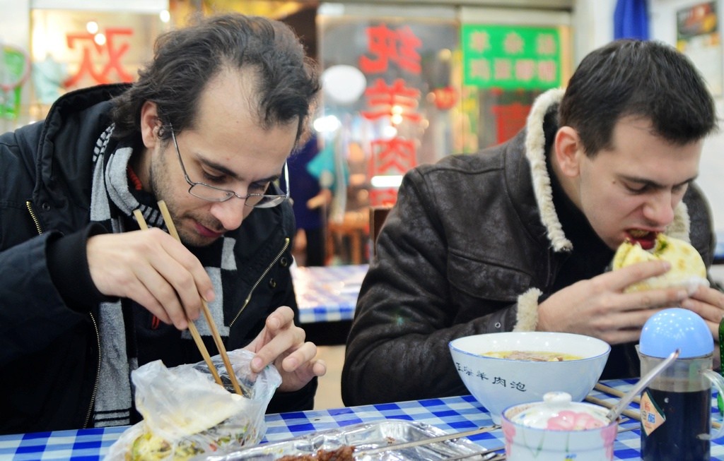对于陕西人来说,吃饭是不分贫富贵贱,不分社会地位的。在油腻腻的饭馆里,你有可能看到下苦力的人,也可能看到戴着金链子顶着啤酒肚的小伙子、还有可能遇见刚逛完商场提着大包小包画着精致妆容的姑娘,甚至连经常出入高档场所应酬的有钱老板也会私底下到这里来享受实实在在的美味。