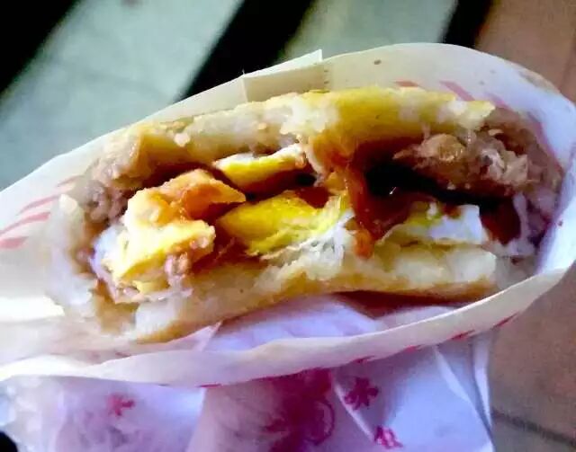 我喜欢吃加煎蛋和火腿的是因为这俩也是卤过的 火腿是绵绵的口感 不是一般的那种脆感