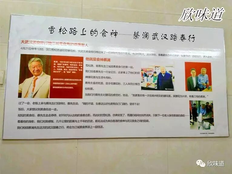 店内的墙上挂着蔡老爷子这次武汉之行的宣传,和网上的文字相差无几。