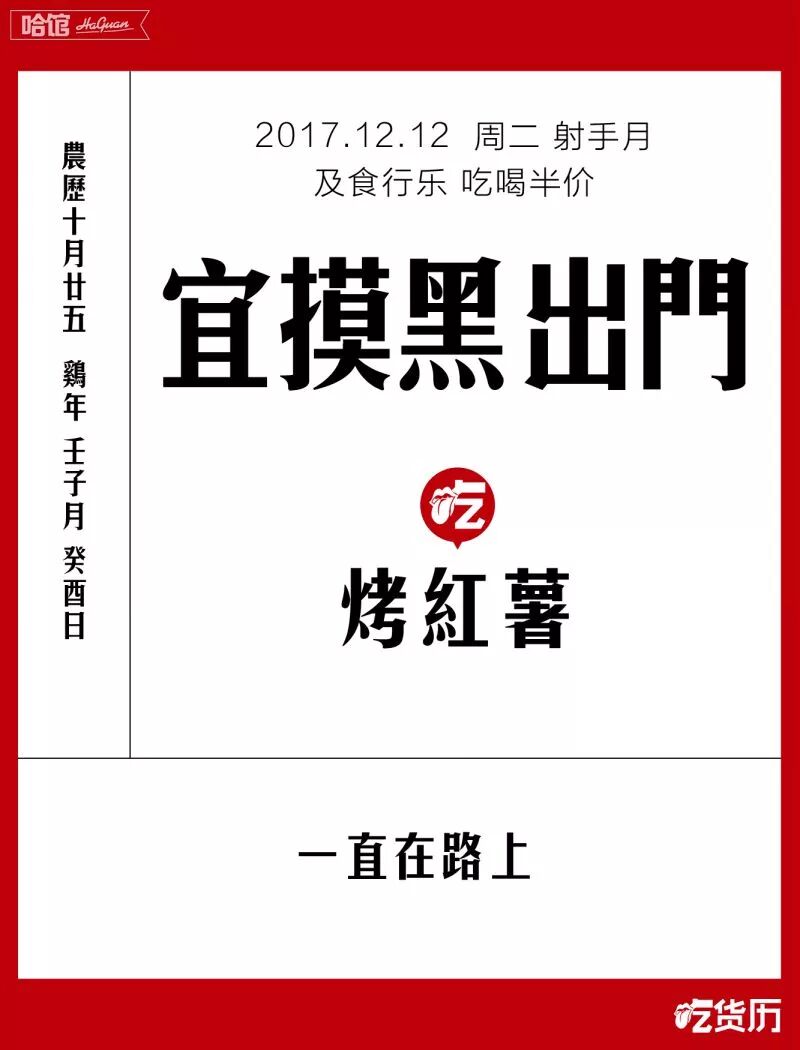 12月12日,宜摸黑出门。早点儿出来吧,别再迟到了。买个烤红薯捂捂手,还能解决早餐呦。