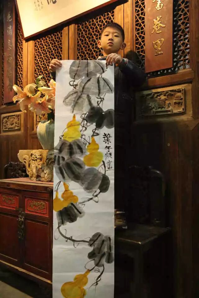 看着孩子们画出的一幅一幅比自己还高的葫芦大作,是不是很好奇小小的孩子们是怎么画出这样大大的作品的呢?让我们一起走进孩子们作画的现场吧!