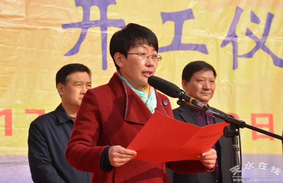 (秦安县委副书记、县长程江芬主持开工仪式 。)