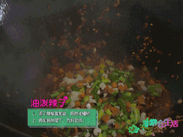 陕西著名的“油泼辣子”,是将干辣椒面加盐用热油爆炒一下,再加各种菜丁佐料作成。