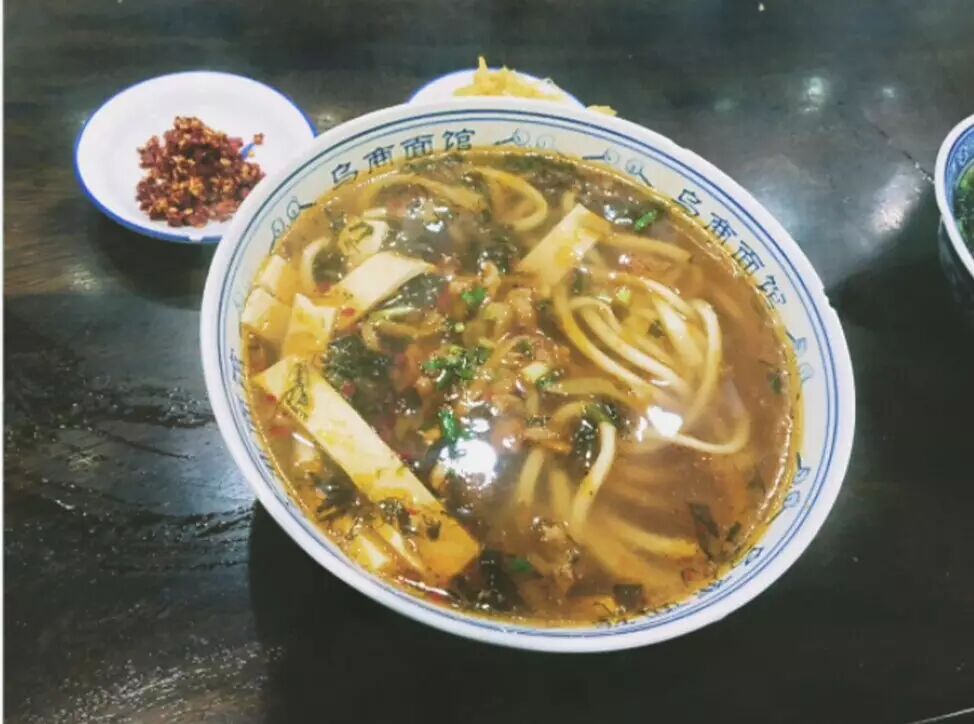 义乌佛堂千张拉面。 拉面,不同于手擀面、机器面,它光滑、有劲道、有弹性。千张面的汤色与清水无异,千张、面条、肉丝、酸脆榨菜丝、香葱,清爽宜人。根据个人口味,加上店家秘制的辣椒酱或是醋,味道鲜美。面和千张都很有嚼头,汤汁清爽不油腻,鲜味十足,喝一口满口留香。