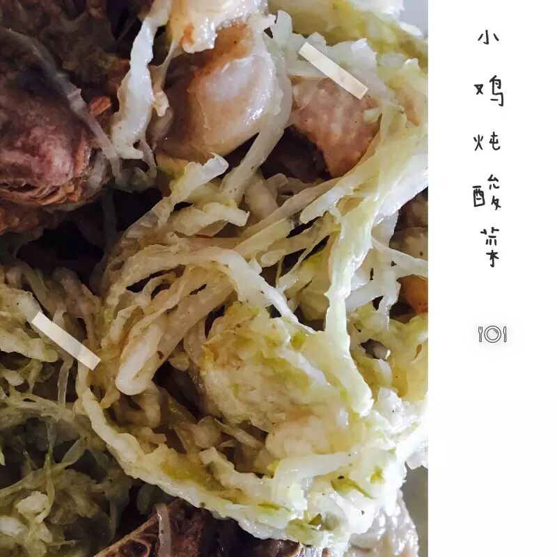 2.小鸡炖酸菜,东北酸菜不同于四川酸菜,由当地盛产的大白菜腌制而成。冬日天寒地冻,不适宜新鲜蔬菜的种植,秋日腌制酸菜主要是便于寒冬腊月时节吃上蔬菜制品。作为东北人,每年年夜饭最少不了的就是酸菜馅儿饺子。