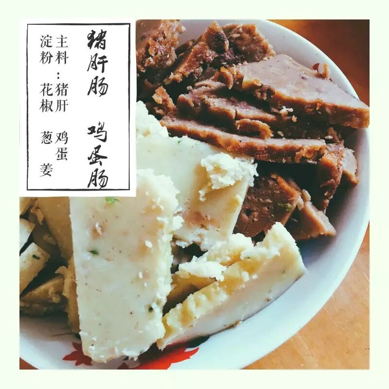 3.鸡蛋肠和猪肝肠,原料分别是以鸡蛋和猪肝为主,除此之外的原料还有肠衣、淀粉、葱、姜、蒜等,仿照灌肠工艺,经灌制、漂洗、蒸煮、冷却等工序加工而成的一种粉肠类制品,具有丰富、味美辛香、食用方便、易于贮存等特点。