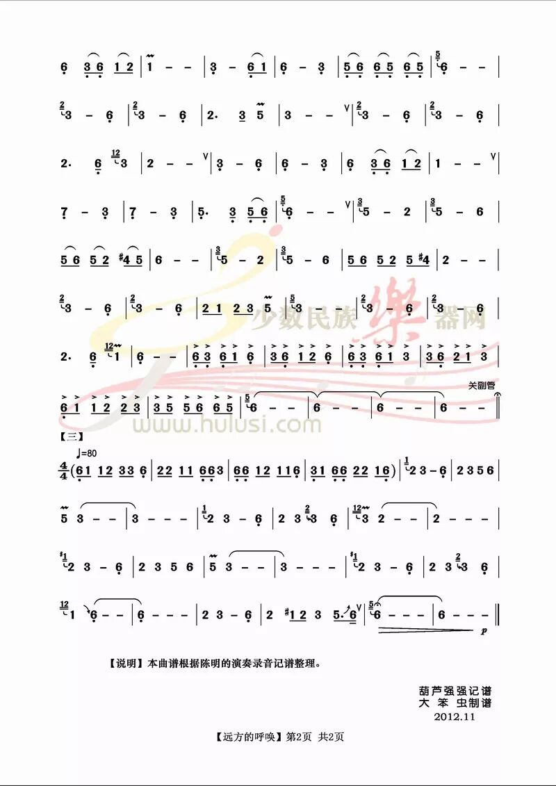 《远方的呼唤》曲谱
