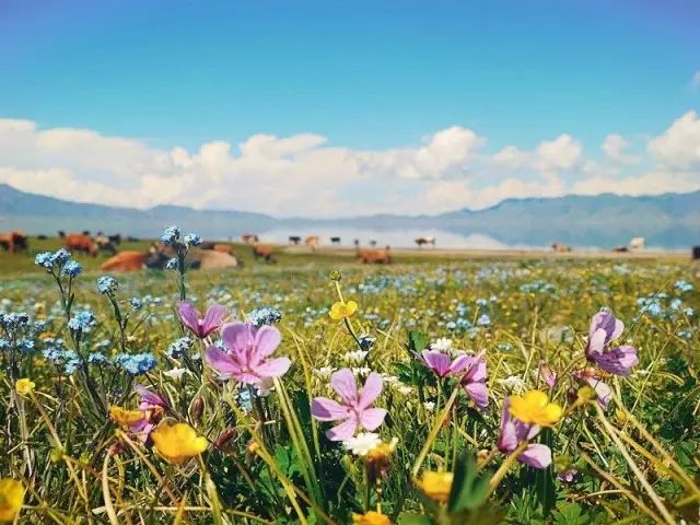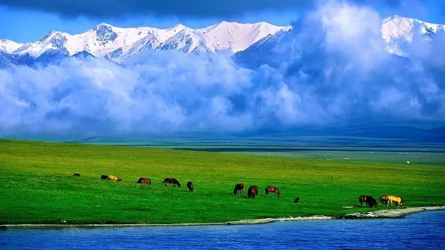 雪山、森林、蓝天、白云、牛群、马儿、花海,绝对刷新你对湖泊的认知。