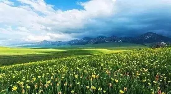 天山雪山群勾勒最美天际线:千峰万壑重峦叠嶂——草原是天山为牧民筑造的良田美宅 ,天际处乌云和阳光的缝隙,这种美,只可意会!