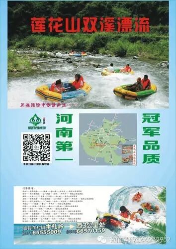 莲花山双溪漂流项目占地一千多亩,河道规划长度17公里,是木札岭流域唯一的大型清水漂流项目,也是中原地区最大、最好的漂流项目,并填补了木札岭景区四季漂流及大型水上乐园的空白。