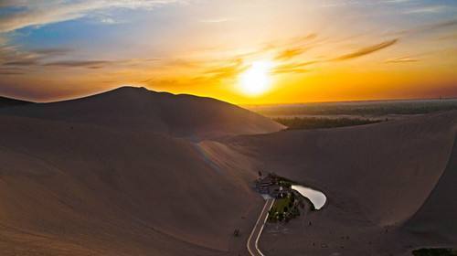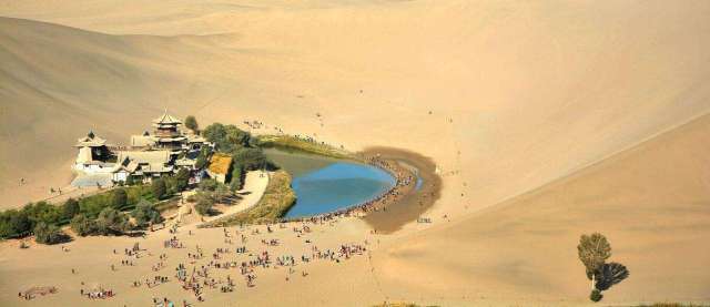 敦煌,大漠中的一片绿洲。之所以这样说,着着实实是因为这是被隔壁和沙漠所围绕的一座小城,。