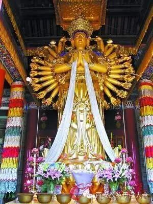 千手观音像是由俄罗斯珍贵椴木雕制,闪闪发光。