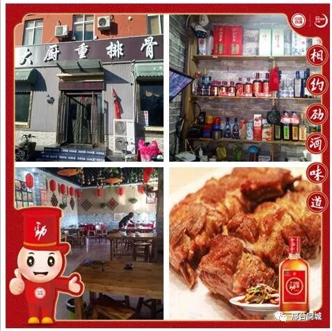 推荐理由:熏排骨属于川菜,主要原料是排骨,加以熏制,口味咸鲜。大厨家做熏排骨也有些年头了,口碑超赞。他家的熏排骨色泽暗红,咸鲜浓香,深受当地人的喜爱。平时馋肉的朋友来吃熏排骨一准解了你的馋。