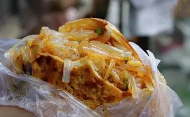 热气腾腾的粉面锅盔装上拌好的川北凉粉,一口下去既有劲道的凉粉的麻辣鲜香。吃到最后锅盔饱饱吸收了凉粉汁的鲜辣,又别有一番滋味。