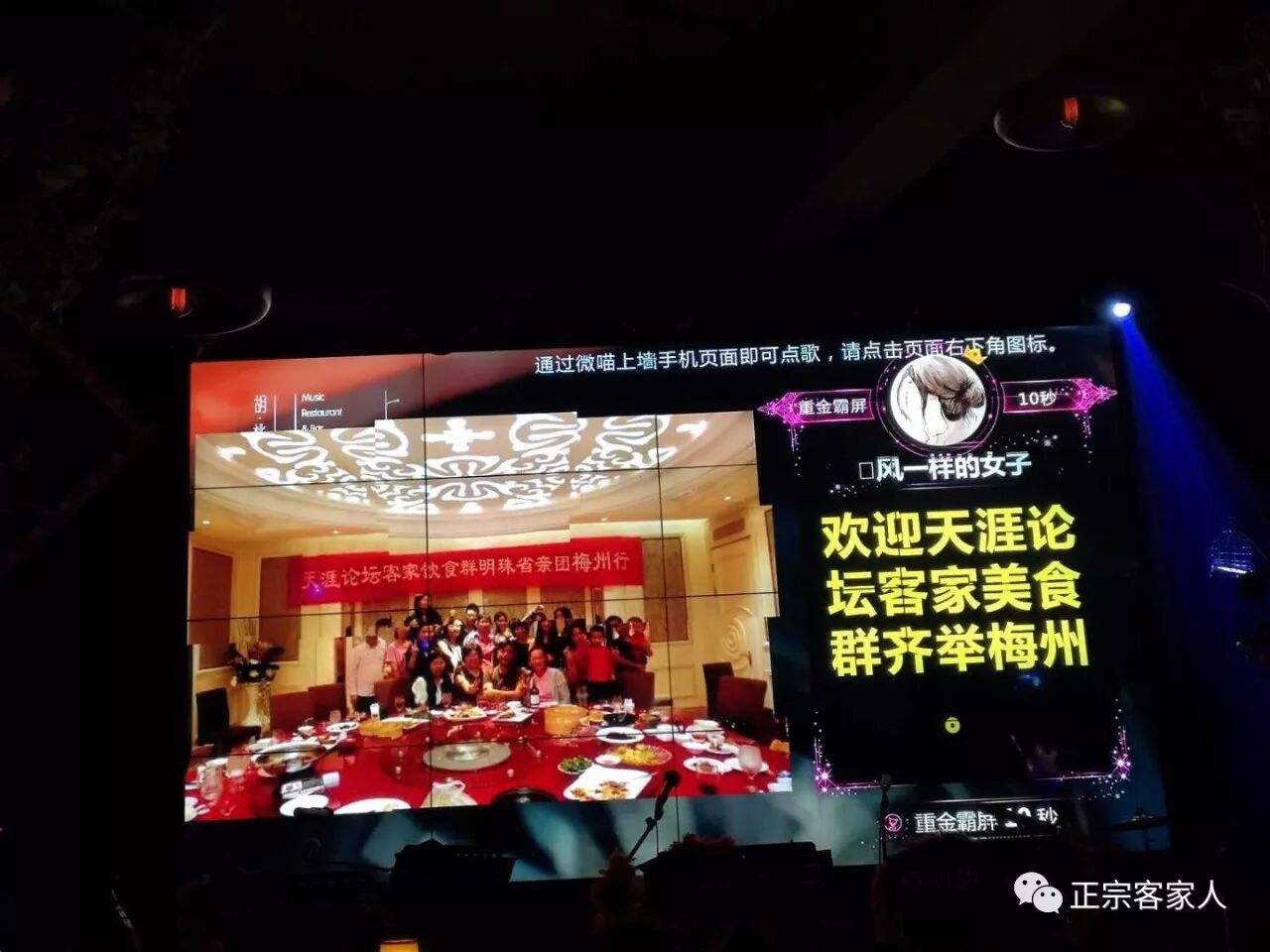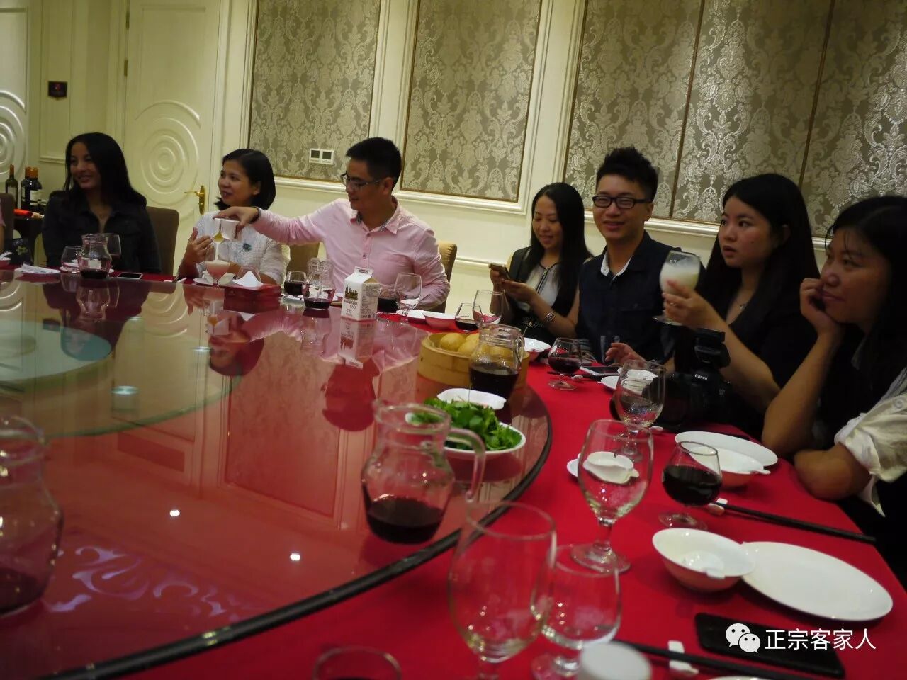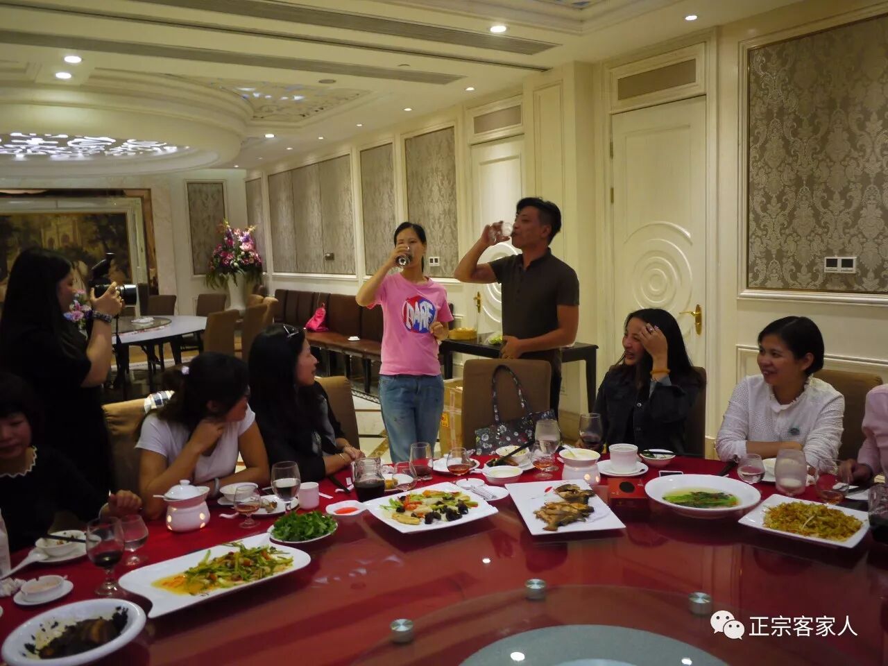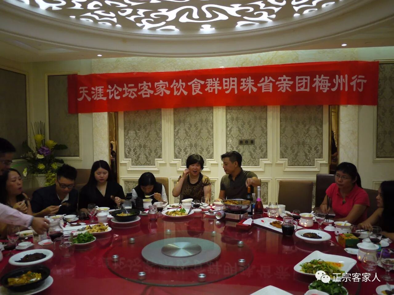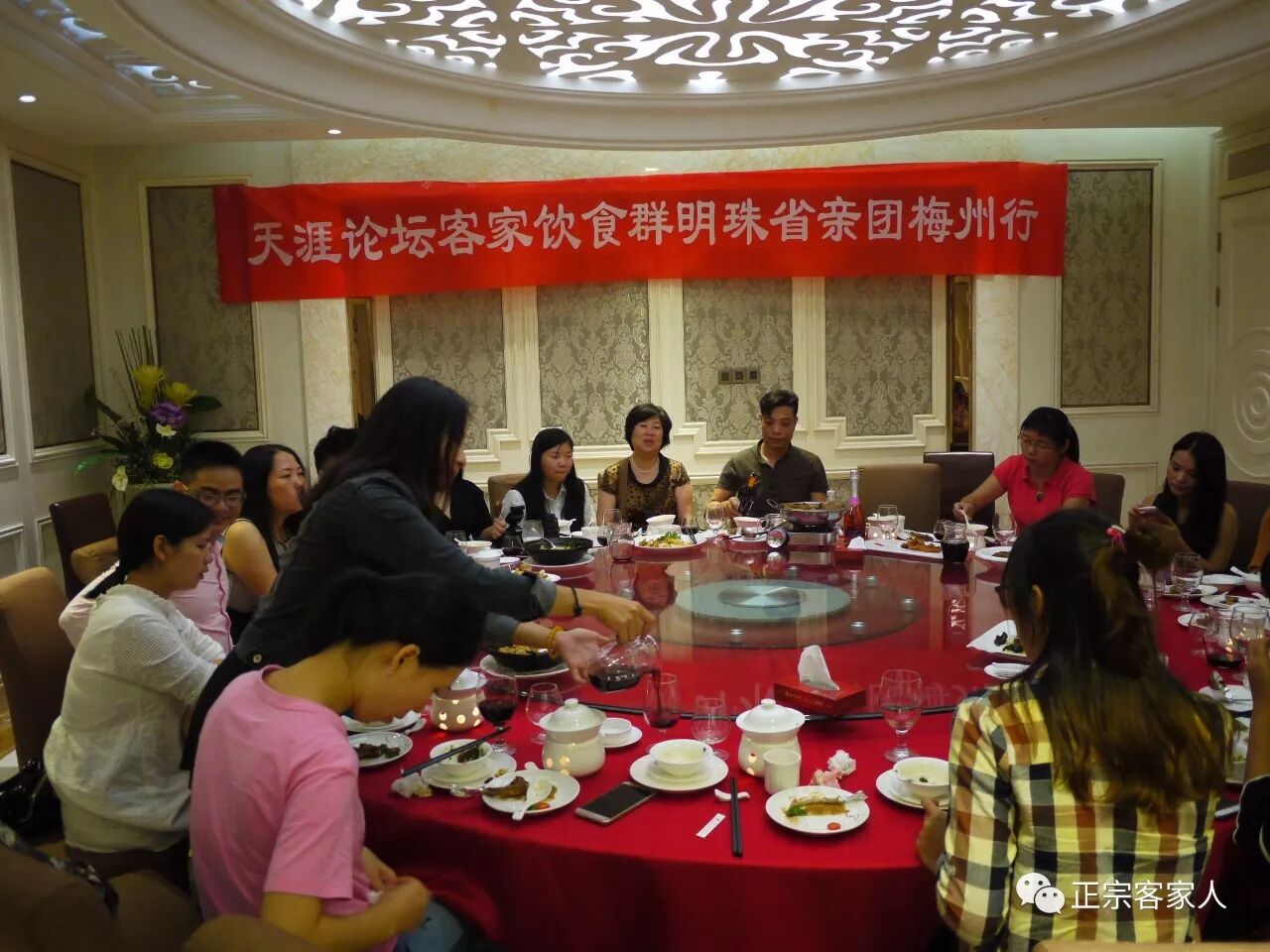 群聚会的第一天,这餐饭是群主平常土豪哥哥请的,花了3000多块钱,红酒是杨生和欧巴赞助的。20多人的大桌,坐无虚席。酒店位于梅州的客天下,是一家高档酒店。酒席上气氛热烈,交谈甚欢,虽然所有人都是第一次见面,但是很亲密,感觉像是多年未见的老朋友。大家举杯欢庆这一美好的时刻,同祝天涯论坛、客家厨房群越办越好!期待以后还能再聚。这场盛会通过我天涯直播,3000多名天涯网友见证了这场盛会,很多网友现场跟我互动,都说后悔没来参加群聚会,希望下次有机会参加。