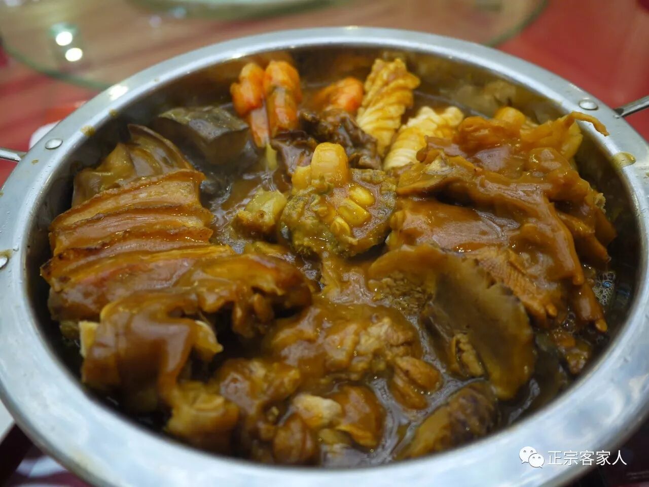 这盆大盆菜要300多块钱了,食材有:鲍鱼、鱿鱼、虾、菌菇、海参、猪手、鸭掌等等,都是高档食材,一般是有钱人春节才吃的菜,是酒店经理送给平常哥的,平常哥哥好大的面子呀!我们跟着沾光啦,谢谢平常哥的盛情款待!