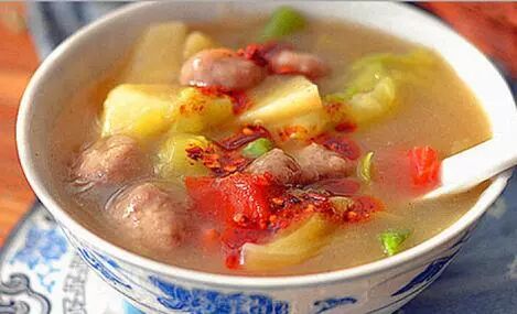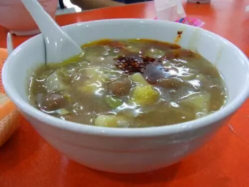 肉丸胡辣汤是西安一直流传的清真小吃,“牛羊骨熬汤,汤里加入浑圆的牛肉丸子和切块的蔬菜,勾芡而成。丸子有牛肉香,菜品丰富,入口麻为先,辣为辅,麻麻辣辣,香味浓郁,浓稠度刚刚好。