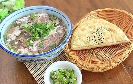 碗大汤宽,配上白吉馍,可以把馍泡入汤中,连吃带喝,也可以一口汤一口馍,就着羊肉汤,吃的你汗流浃背,大呼畅快!这一整天的心思也跟着豁然开朗了起来!
