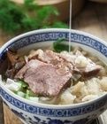 提起"葫芦头泡馍",作为老陕,尤其西安市民,几乎是无人不知。 "葫芦头泡馍",是西安特有的传统风味佳肴以味醇汤浓、馍筋肉嫩、肥而不腻闻名于国内外。其烹制工艺精细,合理使用多种调。最重要的是处理肠肚、熬汤、泡馍三道程序,其中原料肠肚要经过十几道工序才能达到去污、去腥、去腻的要求,做出美味的葫芦头。它不仅味道鲜美,且有食疗价值,故而它能久盛不衰,深深扎根于民间。其好处有一首诗可以概括"肉如玉环汤似浆,五味和中适口尝。辣油红润晶如珠,腥味尽除满口香"。