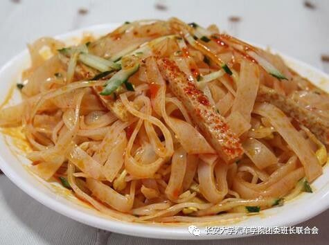 擀面皮是陕西地区特有的汉族名小吃,尤以西府宝鸡地区为最佳,宝鸡岐山擀面皮2011年被认定为中华名小吃。