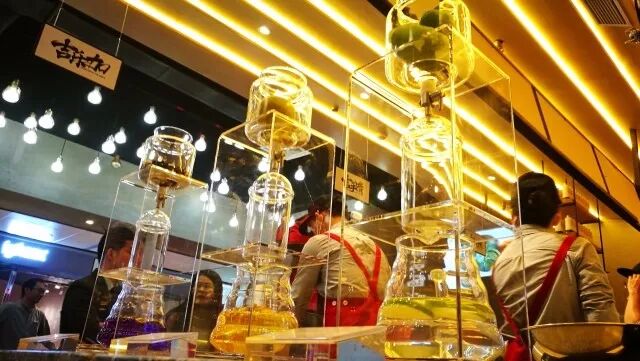 还有通过冰滴壶现场萃取制作纯味凉茶