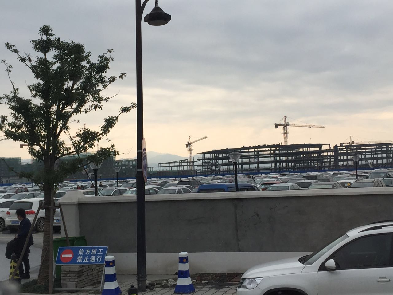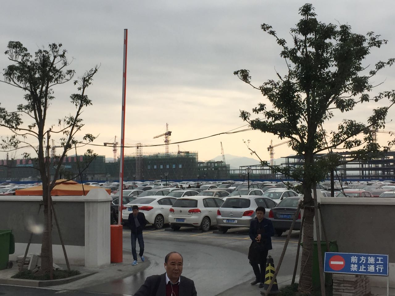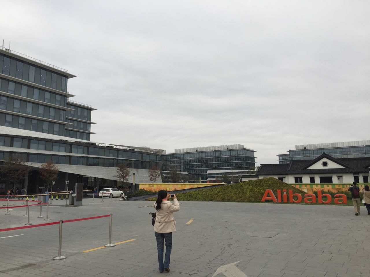 然后当我们看到阿里的大楼时,门口已经是极度拥堵了