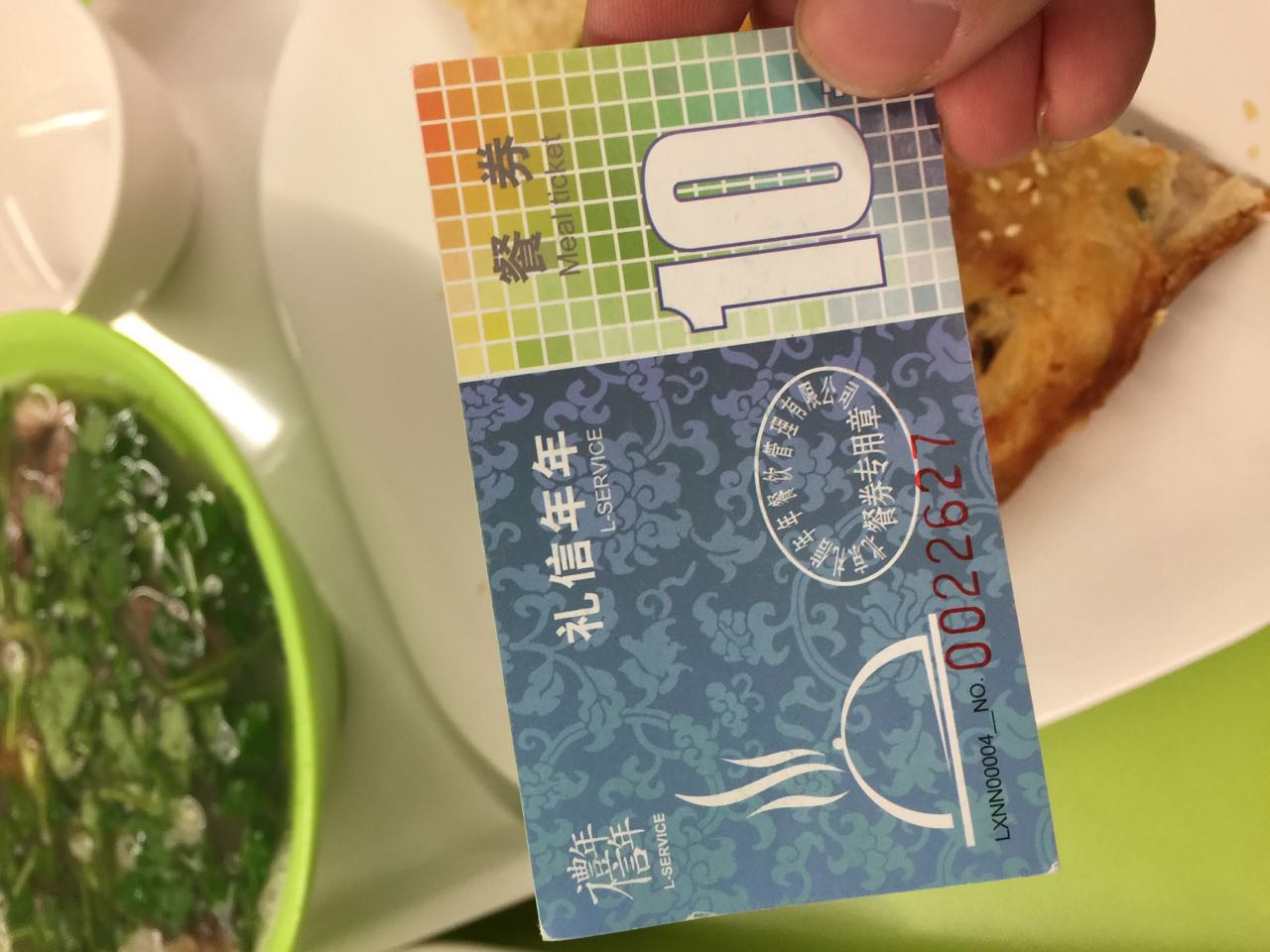 这里有羊肉泡馍、鸭血粉丝、羊杂割等等我的最爱,但消费则是用可以找零的餐卷